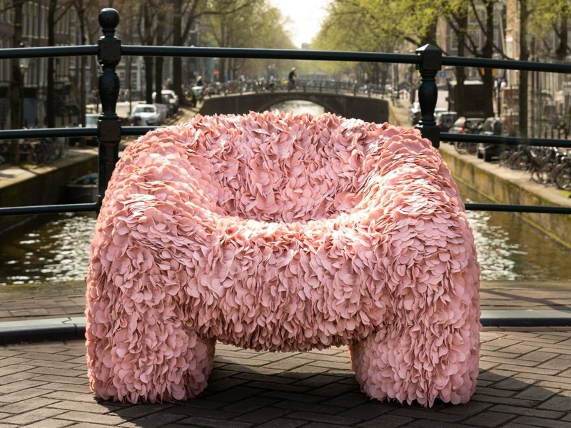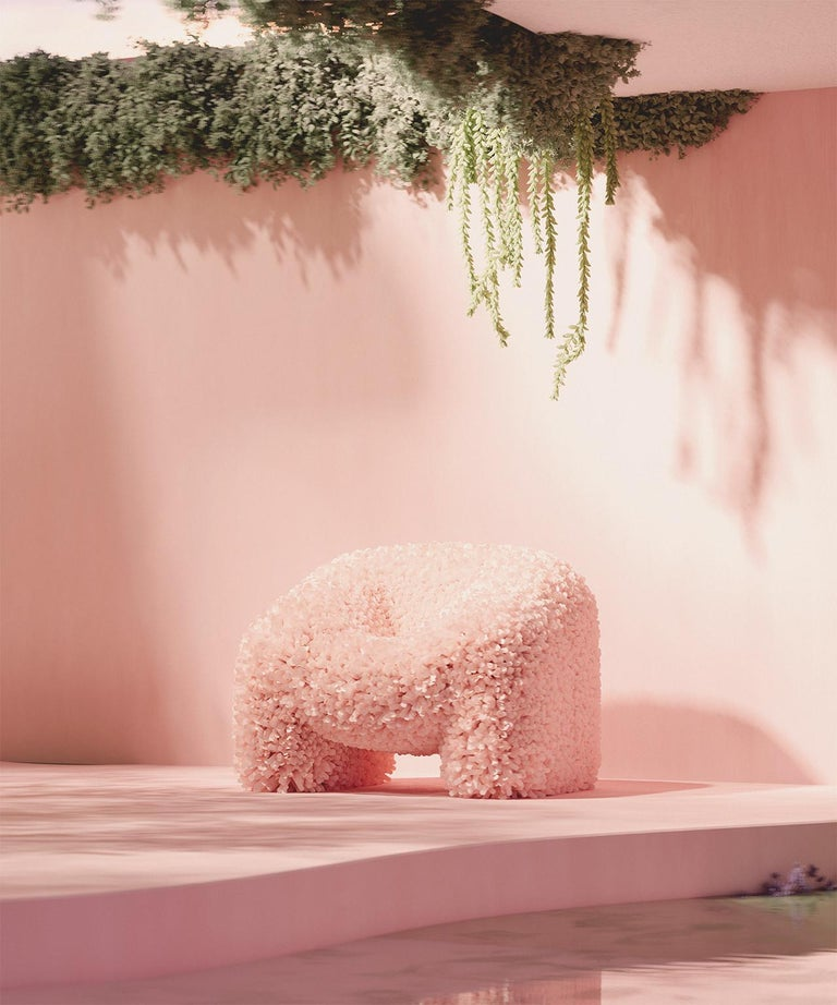 Andres Reisinger’s Hortensia chair is another example of actualization through the process of creation, but with opposite directionality. Reisinger designed a digital three-dimensional armchair covered with geometric pink petals, wanting to capture “the feeling of blooming flowers.” Originally intended as a digital artefact, the virtual object went viral, with strong demand for its physical representation. The chair ultimately went into production, with a limited-edition selling out through a gallery in Milan, at around 30,000 euros per piece.